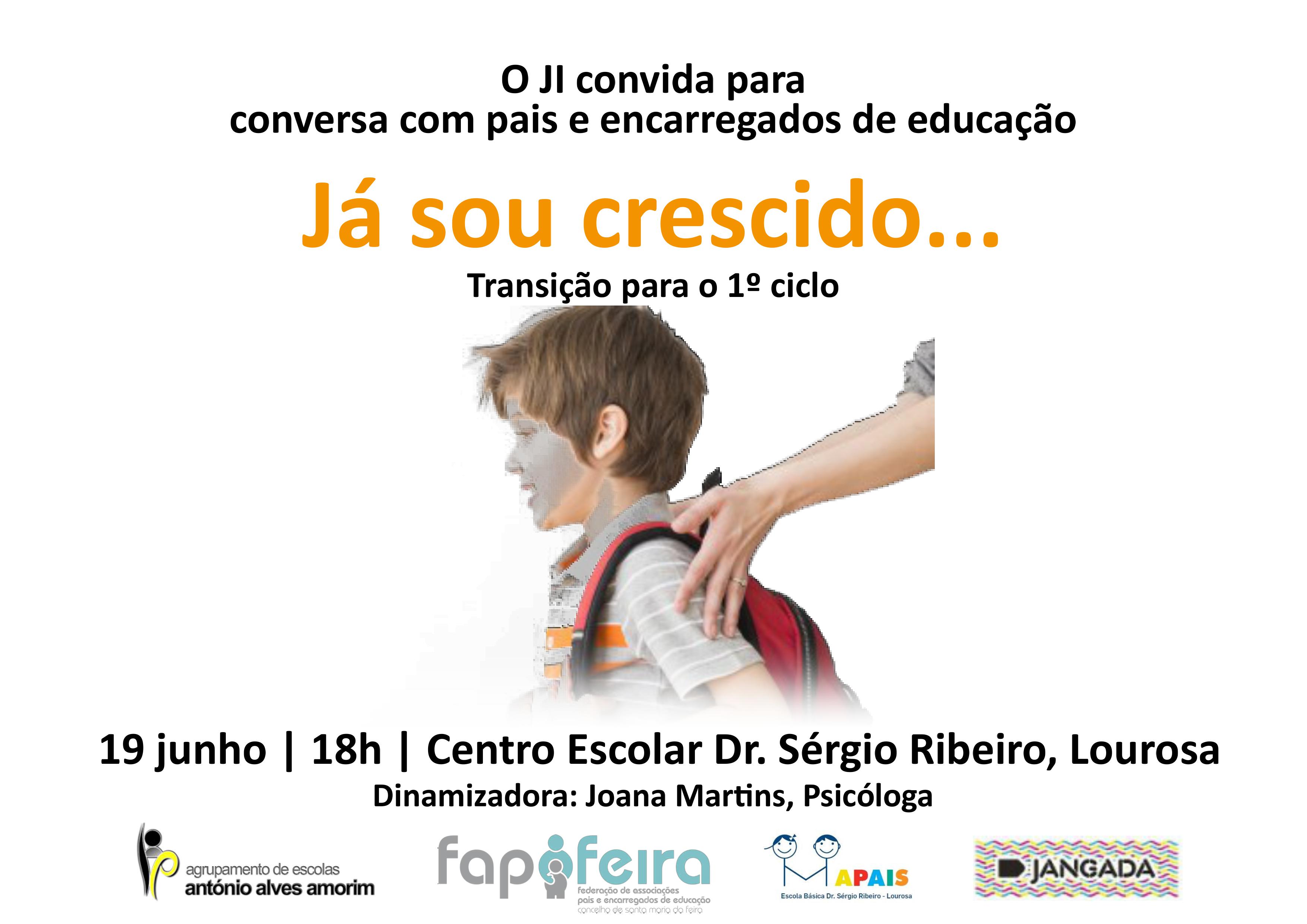 O Jardim de Infância, a Associação de Pais do Centro Escolar Dr. Sérgio Ribeiro e a FAPFEIRA convidam os pais/encarregados de educação e os profissionais de educação envolvidos na transição das crianças para o 1º ciclo para uma conversa sobre este período de mudança.