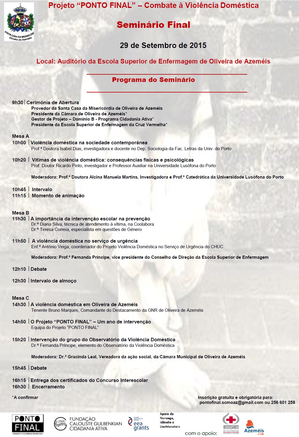 Realiza-se no próximo dia 29 de setembro, na Escola Superior de Enfermagem de Oliveira de Azeméis, o seminário final do projeto "Ponto Final" - Combate à Violência Doméstica.