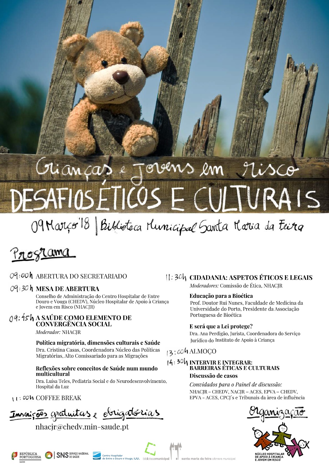 A participação é gratuita mas a inscrição é obrigatória, sendo necessário enviar email com o nome completo para nhacjr@chedv.min-saude.pt