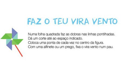 A autarquia desafia cada criança a fazer um vira vento, a decorá-lo e a colocá-lo à janela ou varanda de sua casa no dia 1 de Junho. O repto é igualmente lançado às instituições, para que elaborem um vira vento e o coloquem no seu espaço exterior.